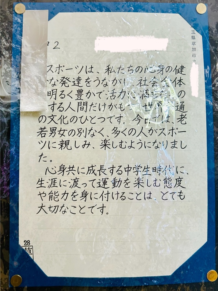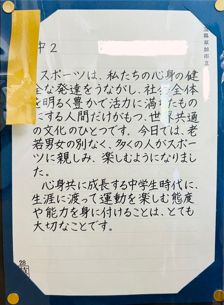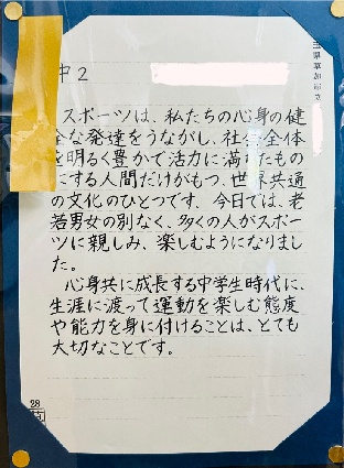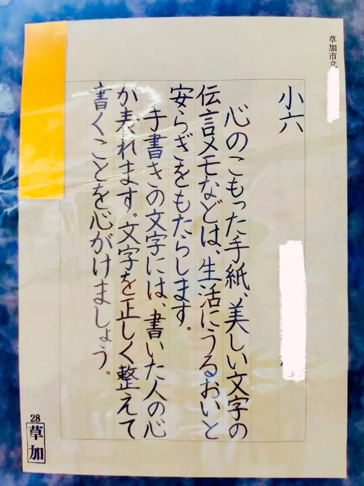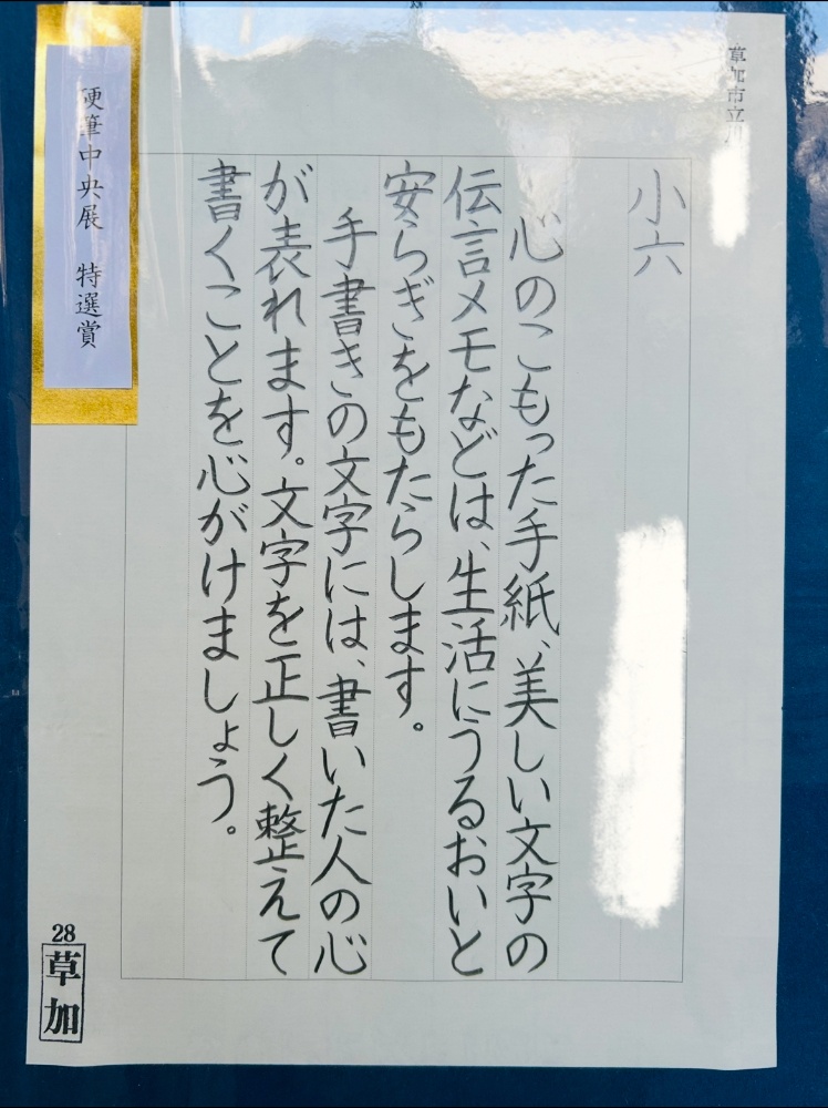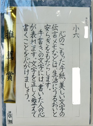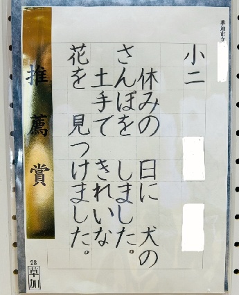 6月28日(土)、29日(日)に八潮市立柳之宮小学校にて開催された硬筆中央展に、当教室から4名の生徒さんの作品が展示されました。