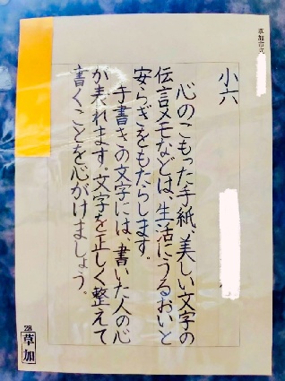 先日、もうすぐ卒業する6年生の生徒さんからもお手紙をいただきました。金賞を獲れて良かった、と。小学校生活最後の書き初めで素敵な思い出を残すことができて私もとても嬉しかったです(^^)