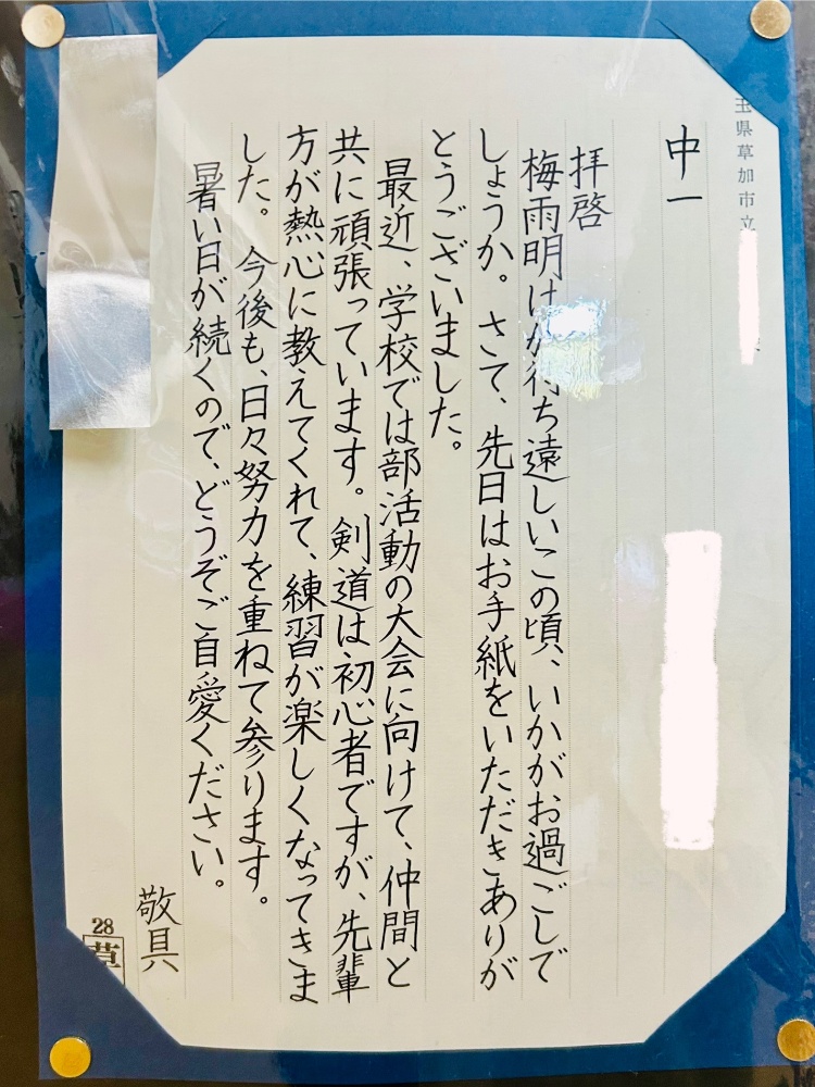 2020/2/7 お久しぶりの更新となりました。あっという間に新年を迎えて、無事に書き初めが終わり、ホッと一息をついていると。。可愛い1年生の生徒さんからこんな素敵なお手紙をいただきました。後ろに手紙を隠しながら、照れ臭そうに2人で近寄ってきて「せーの、はいっ」って。ズッキューン(笑)なんて可愛いのでしょう!!
